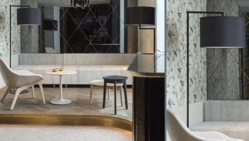 Светильник Noon был создан для бренда Zeitraum. Его создателем является дизайнер El Schmid. Его прямые линии и упрощенная конструкция является абстракцией дерева, а точнее, его ветвей. Дизайнер попытался воссоздать кроны в современной интерпритации. Свет от плафонов красиво наполняют помещение, а тканевый плафон добавляет уюта.